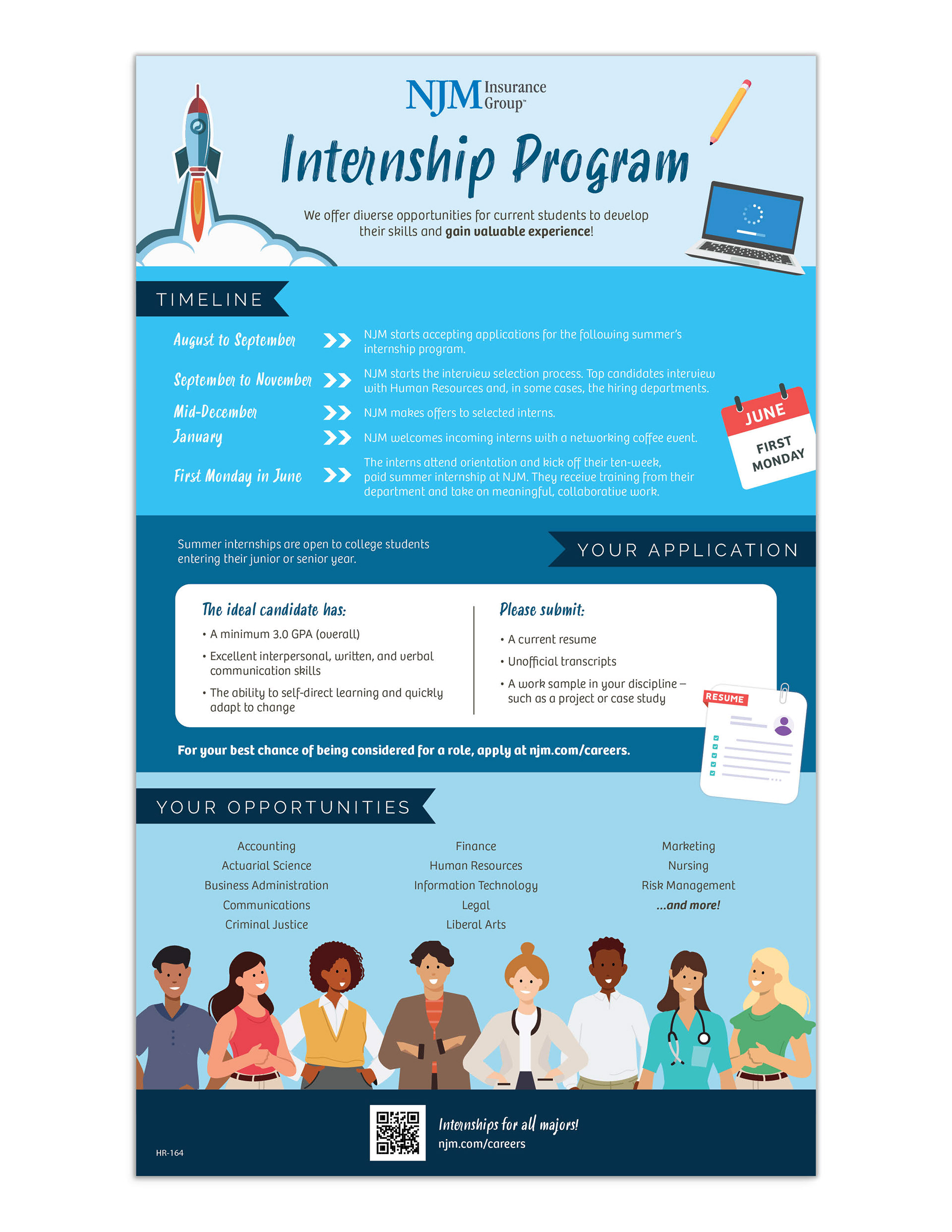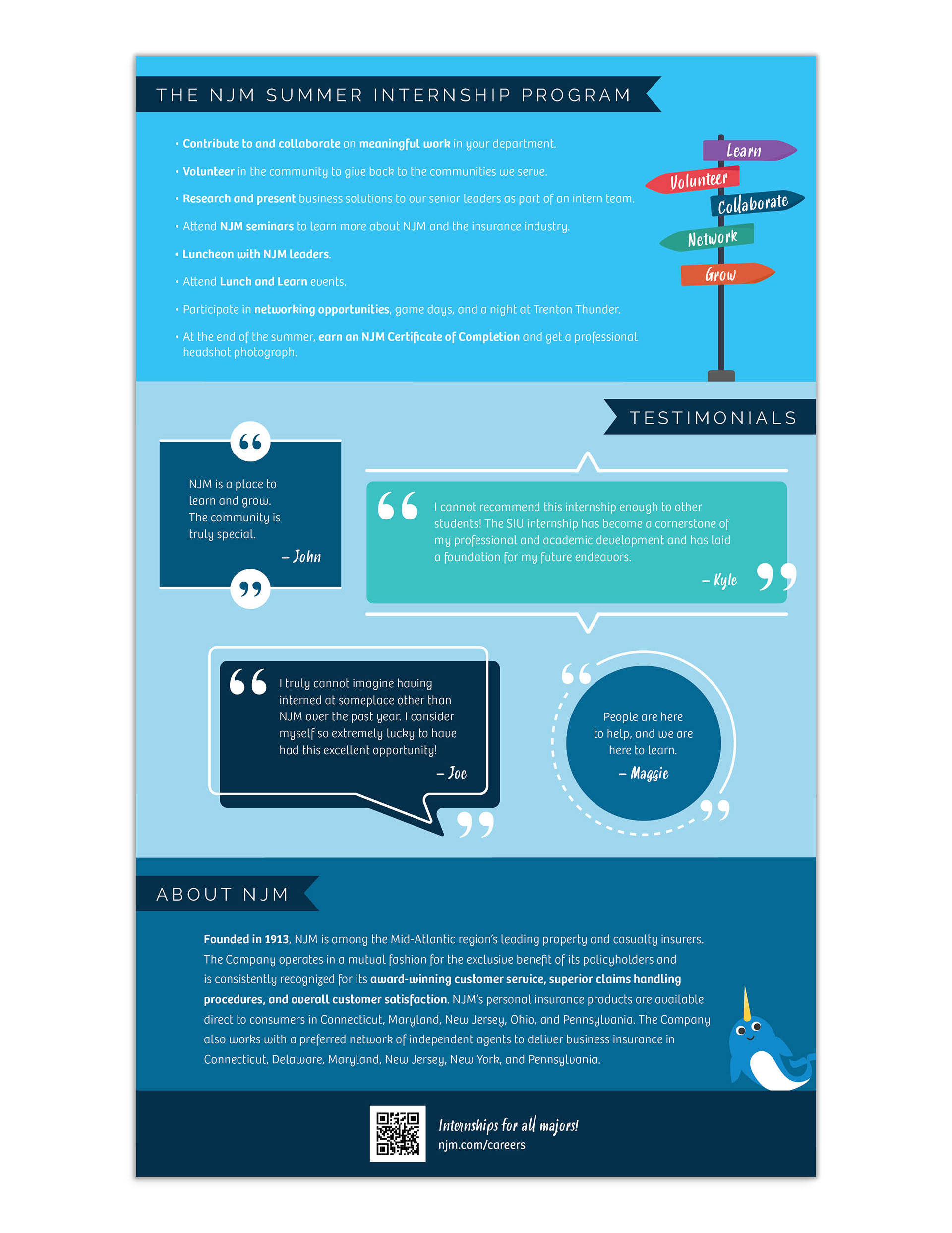 This is a infographic handout that I created to provide a summary of information for the NJM internship program.