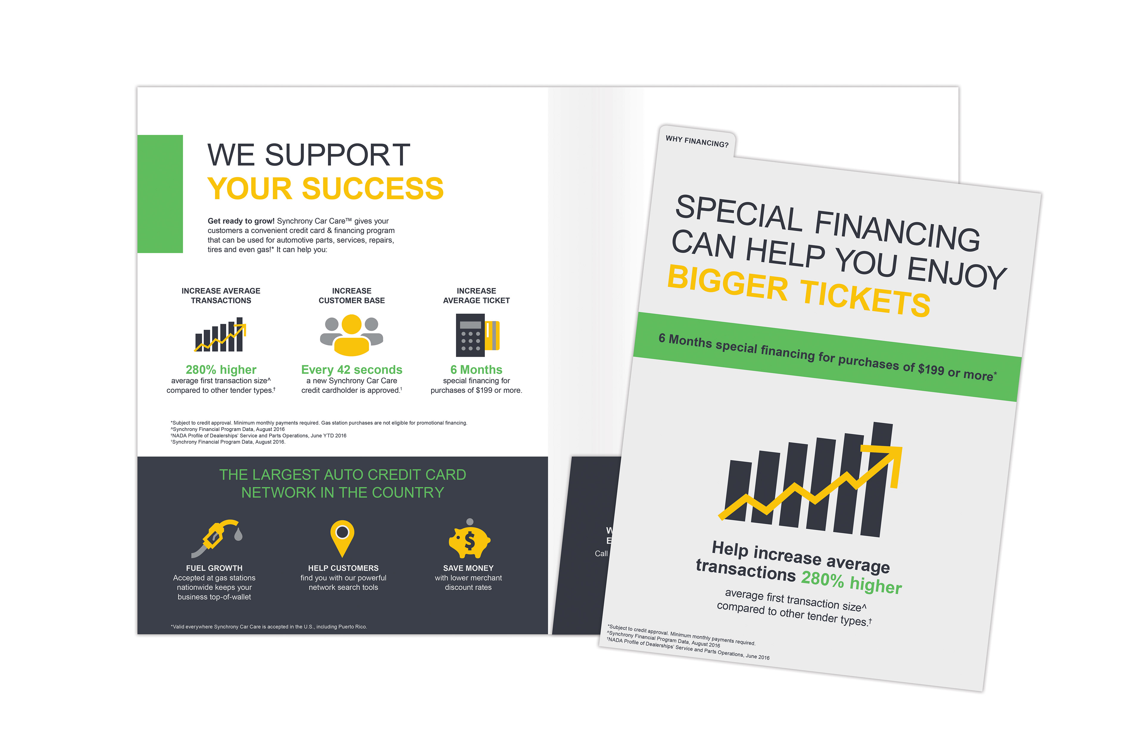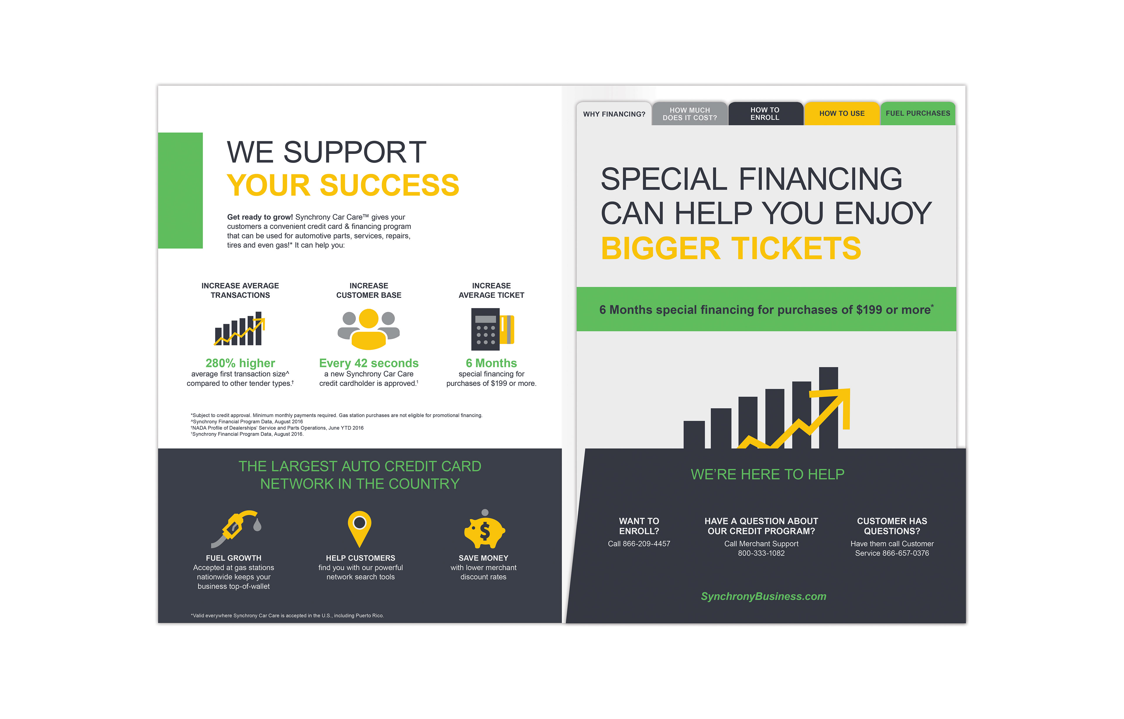 This is an educational folder that I designed for Synchrony Car Care. I also designed the informative insert pages that discussed the benefits of Car Care and how to enroll.
