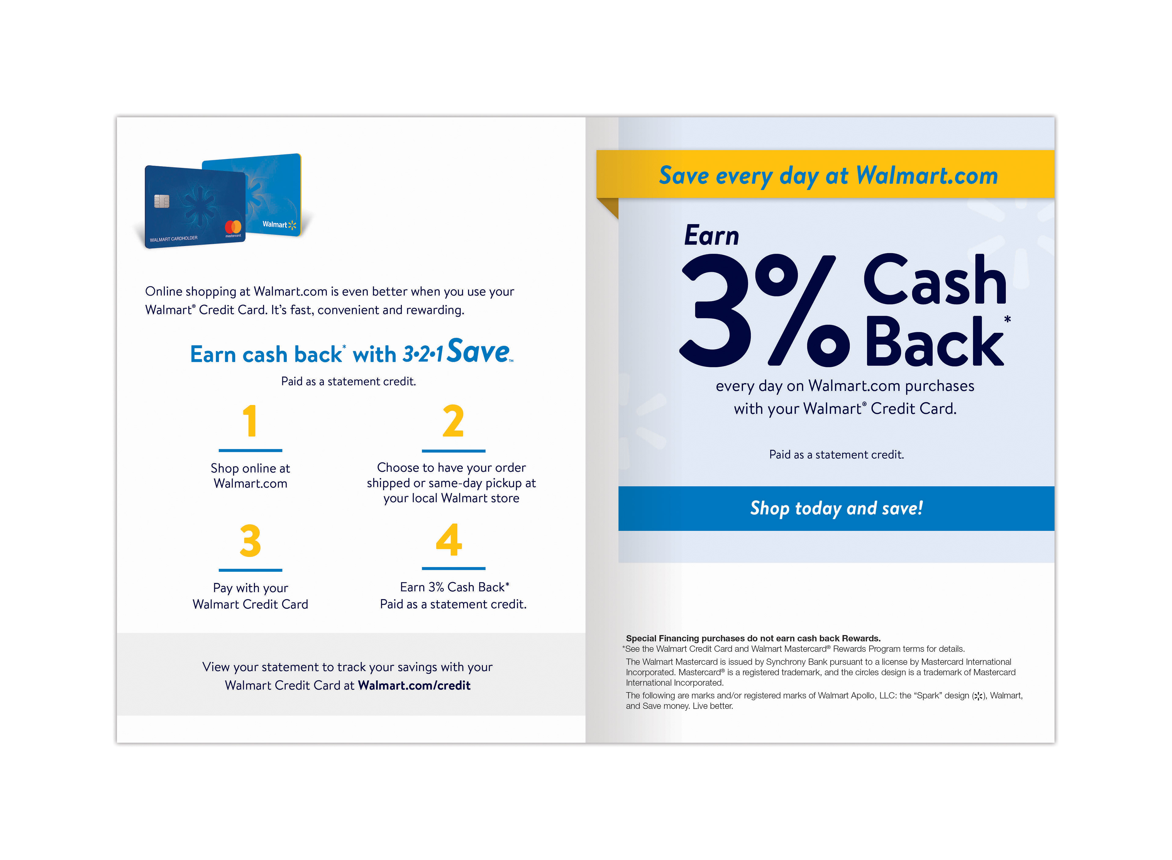 This is a mailer that I designed for Walmart, encouraging customers to shop online and save 3%. The client wanted a simple and clean design.